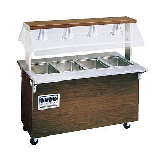 【送料無料・パーティ/サラダバー・モービルバッフェ】【バッフェ ホットフードステーション No.34645 [4槽]】 価格: 1,017,750円 レビュー評価: 0.0 レビュー数:0 寸法(mm):1525×970×H1390(最大1570)●(1槽内寸)305×508×H170●質量:164kg●仕様ヒーター:500W×4ライト:125W×4(赤外線ヒートランプ)消費電力:単相100V 2500W 13A×2コード:全長約3m×2温度制御:サーモスタット安全装置:温度ヒューズ(1槽にスーパーパン1/1サイズ1枚使用可)●シームレス・ステンレストップで、4槽になっています。各槽には、それぞれ500Wのヒーターが組み込まれ、独立した温度調節ダイヤルが付いております。湯煎で使う場合、水からなら2リットルが約1時間で沸騰。尚、各槽は完全に断熱仕切となっていますので、2槽をホットで Supported by 楽天ウェブサービス |